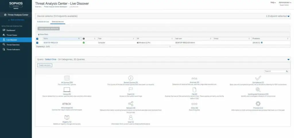 จุดเด่นสำคัญอีกประการของ Sophos EDR คือความสามารถในการเข้าถึงอุปกรณ์ปลายทางแบบรีโมตผ่านทาง Command Line ช่วยให้ผู้ดูแลระบบสามารถตอบสนองต่อเหตุผิดปกติได้อย่างรวดเร็วแม้ผู้ใช้จะไม่ได้อยู่ในออฟฟิศ ทั้งยังสามารถติดตั้งเครื่องมือ Forensics เพื่อตรวจสอบปัญหาที่เกิดขึ้น ถอนการติดตั้งซอฟต์แวร์ สั่งจัดการโปรเซสหรือรีบูตอุปกรณ์ได้อีกด้วย