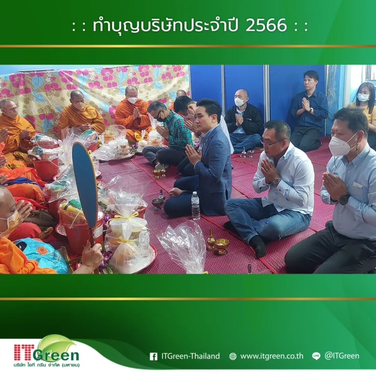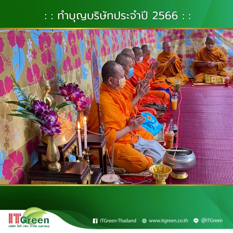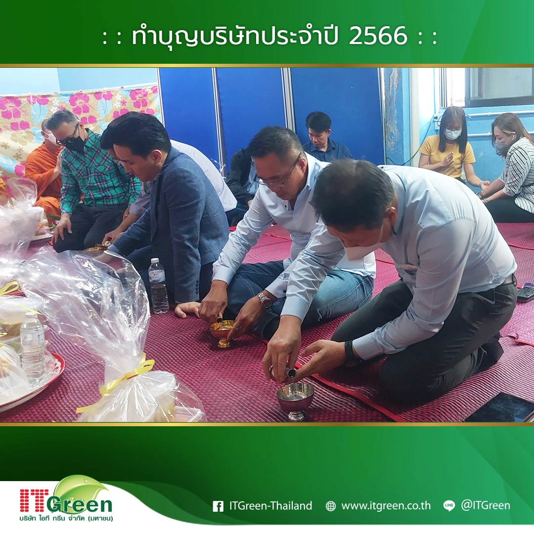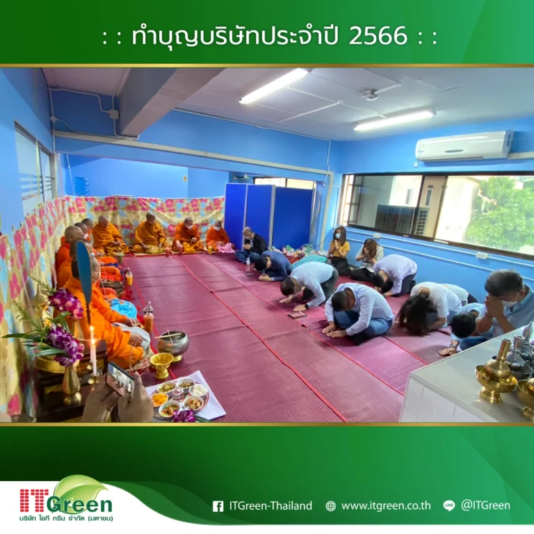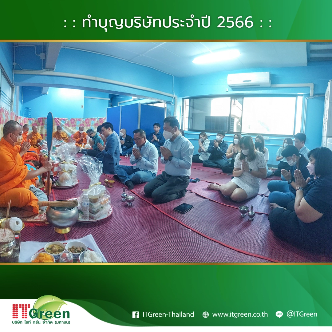 บริษัท ไอที กรีน จำกัด (มหาชน) นำทีมโดยผู้บริหาร และพนักงาน จัดกิจกรรมทำบุญบริษัทฯ ประจำปี 2566 ขึ้นเพื่อเสริมสร้างความเป็นศิริมงคลให้แก่องค์กร