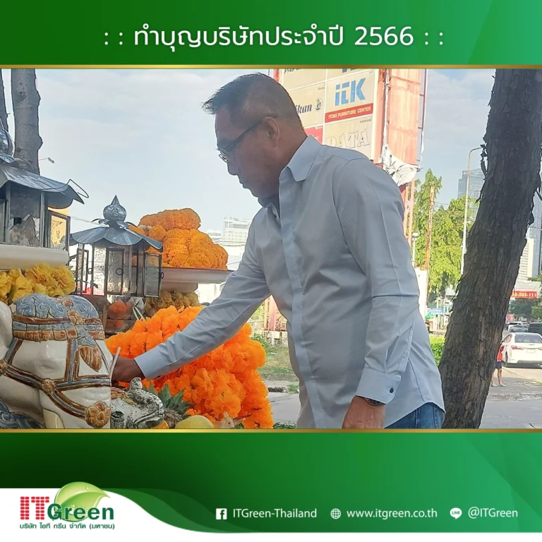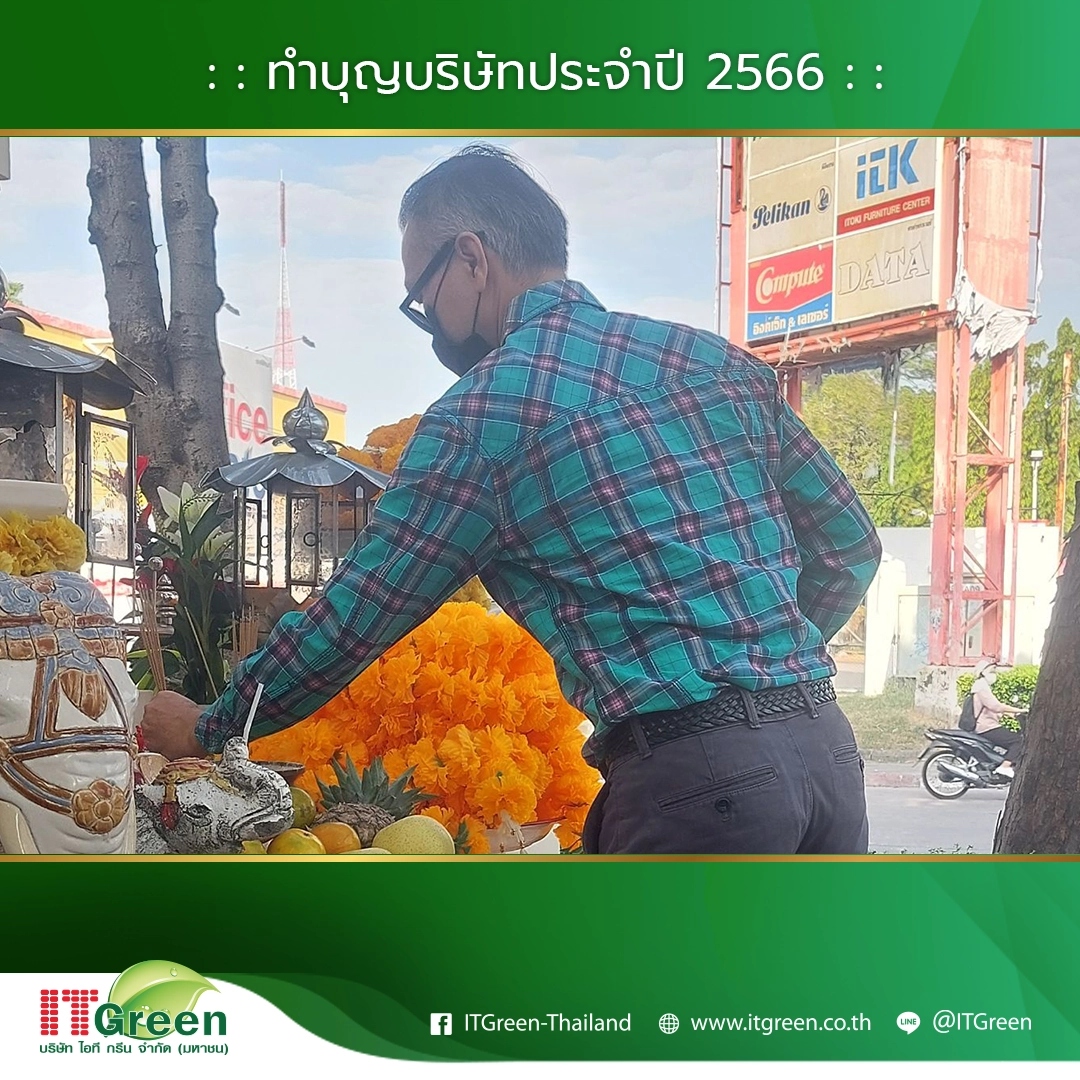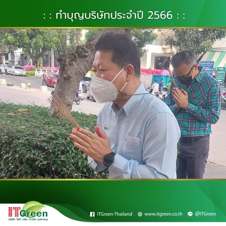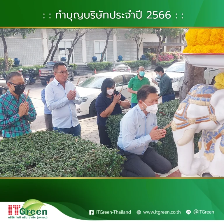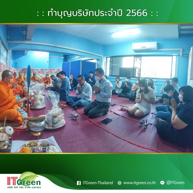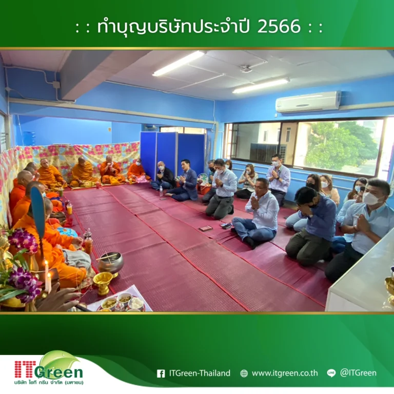 บริษัท ไอที กรีน จำกัด (มหาชน) นำทีมโดยผู้บริหาร และพนักงาน จัดกิจกรรมทำบุญบริษัทฯ ประจำปี 2566 ขึ้นเพื่อเสริมสร้างความเป็นศิริมงคลให้แก่องค์กร
