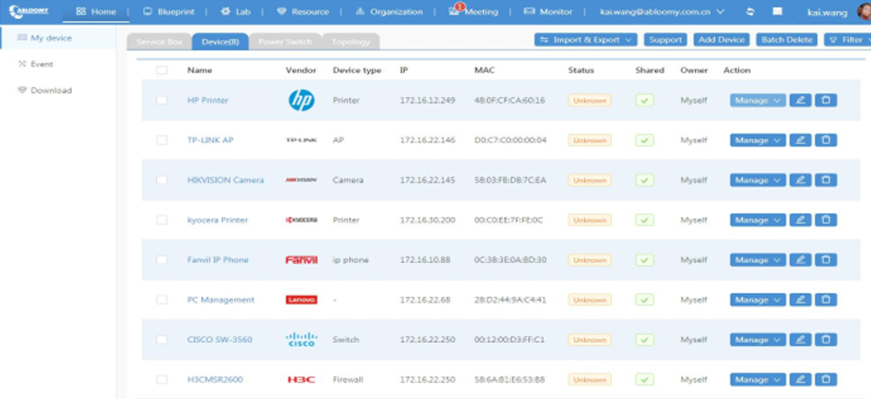 • Unified Manage of all IT Device: AC, AP, Switch, Router, FW, server, etc.