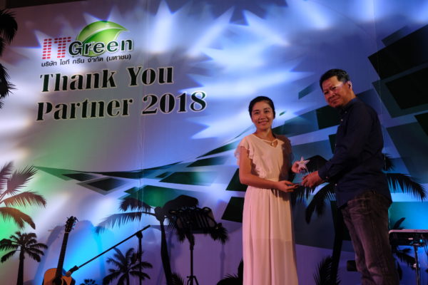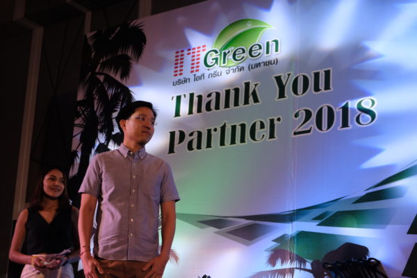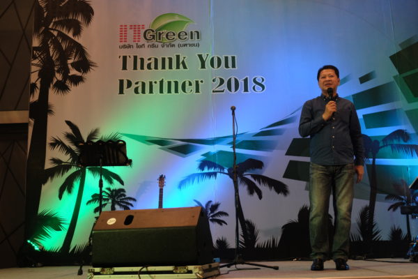 บริษัท ไอที กรีน จำกัด(มหาชน) ได้จัดงาน ITGREEN THANK YOU PARTNER เมื่อวันเสาร์ที่ 5-6 พฤษภาคม 2561 ณ โรงแรม เคป ดารา พัทยา จังหวัดชลบุรี เพื่อเป็นการขอบคุณลูกค้าที่ร่วมซื้อขายกับบริษัทเสมอมา และหวังเป็นอย่างยิ่งว่าจะได้รับการสนับสนุนจากลูกค้าเป็นอย่างดีเสมอไป อีกทั้งยังจัดให้ลูกค้าได้รับฟังการบรรยายจากอาจารย์ ปริญญา หอมเอนก ในหัวข้อ รู้เท่าทันไซร์เบอร์ใกล้ตัว การป้องกันและการปรับตัวขององค์กร เข้าสู่การปฏิวัติทางดิจิทัล ในยุคไทยแลนด์ 4.0 อีกด้วย