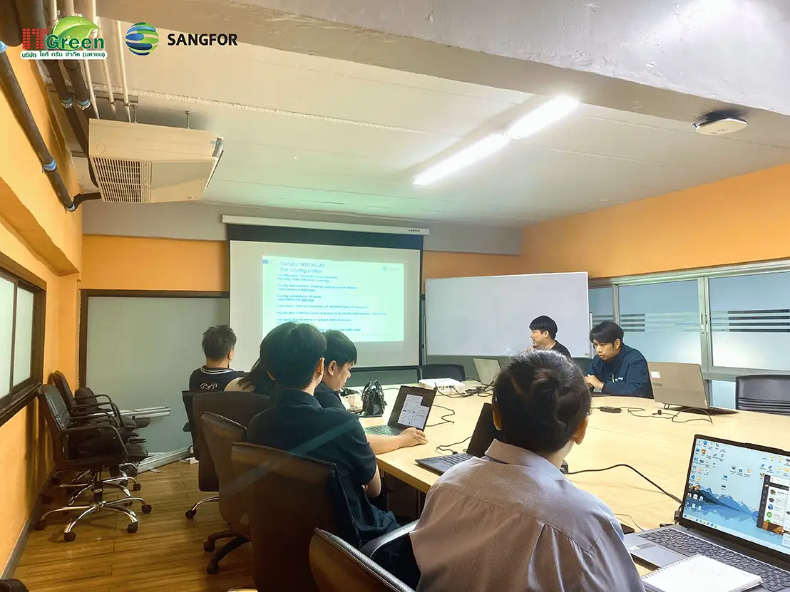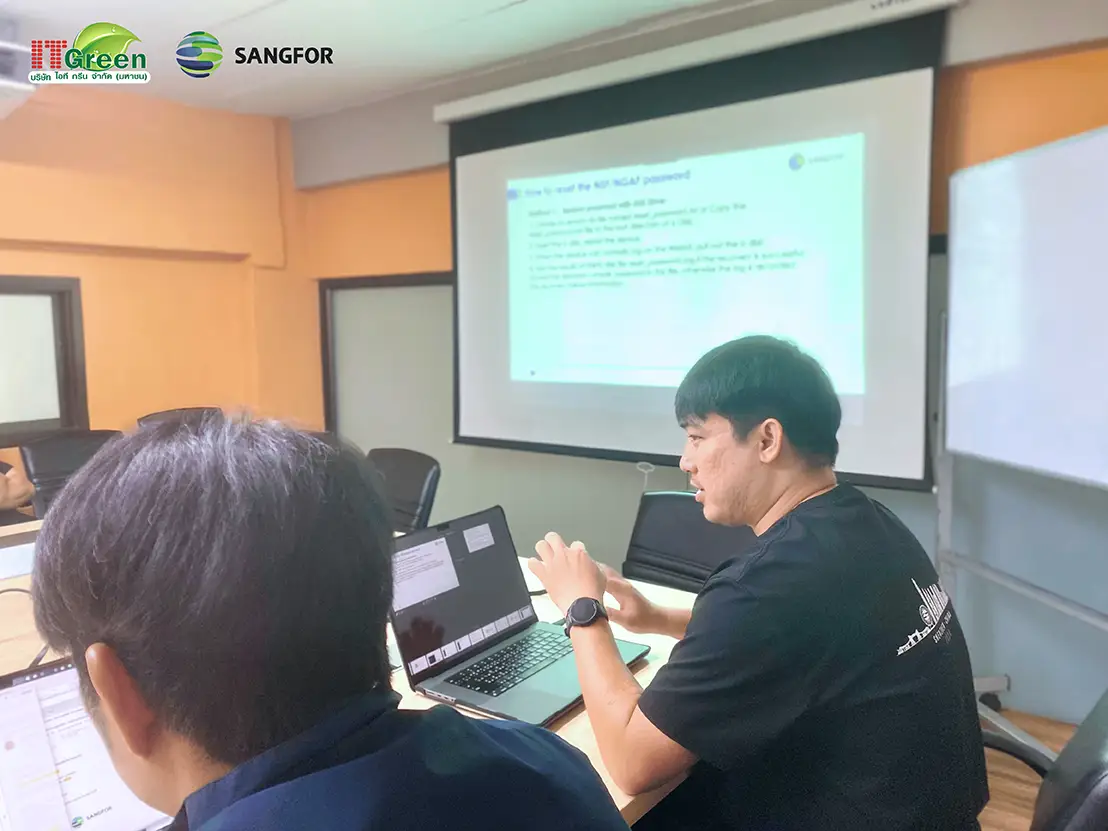 ทาง บริษัท ไอที กรีน จำกัด (มหาชน) ได้เทรนนิ่ง Sangfor NSF Technical Training เมื่อวันที่ 18 กุมภาพันธ์ 2569